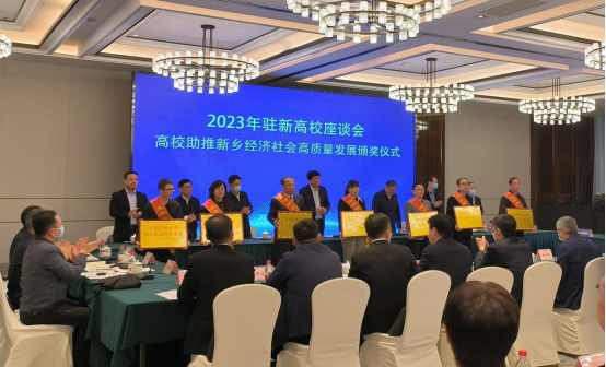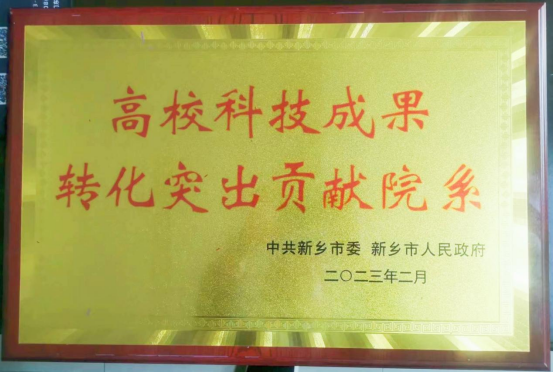 会上,市委常委、市委秘书长谢松民宣读了《中共新乡市委 新乡市人民政府对助推新乡经济社会高质量发展贡献突出高校院系予以表扬的通知》,并举行了颁奖仪式,我校机械工程学院、计算机科学与技术学院荣获“新乡市校企合作先进院系”,材料科学与工程学院、电缆工程学院荣获“高校科技成果转化突出贡献院系”。