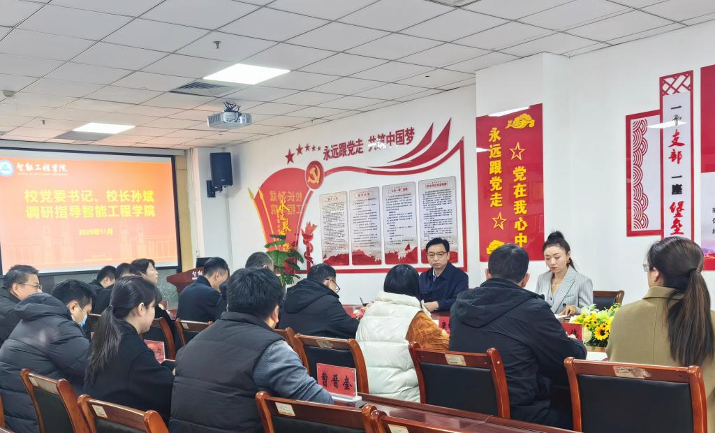 11月26日上午,校党委书记、校长孙斌深入智能工程学院开展实地调研,党委办公室负责人陪同。调研伊始,孙斌在学院领导班子的陪同下参观了学院的实验室,详细询问了学院实验室的仪器设备及建设情况,就教学实验室和科研实验室的建设和运行提出了指导意见。