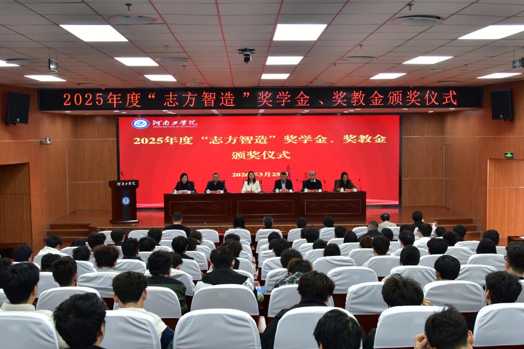 3月25日,2025年度“志方智造”奖学金、奖教金颁奖仪式在我校第三会议室举行。校党委副书记、副校长梁静,党委委员、副校长文永林,河南志方智能科技有限公司董事长董志方、总经理刘枫、副总经理田同强,相关职能部门及教学院(部)负责人、师生代表参加活动。仪式由科研处处长杨捷主持。