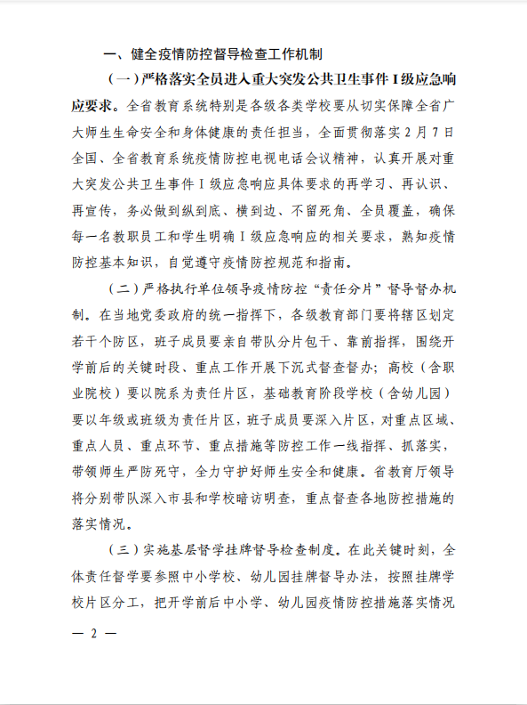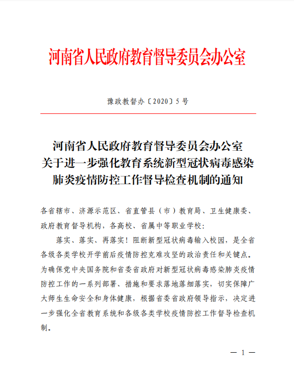 【疫情防控通告十二】关于进一步强化教育系统新型冠状病毒感染肺炎疫情防控工作督导检查机制的通知
