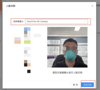 登录后点击【在线培训】-【理论测试】-【开始考试】,在弹出的人脸识别对话框中,选择摄像头,点击【开始识别】,即可上传的证件照片进行比对。