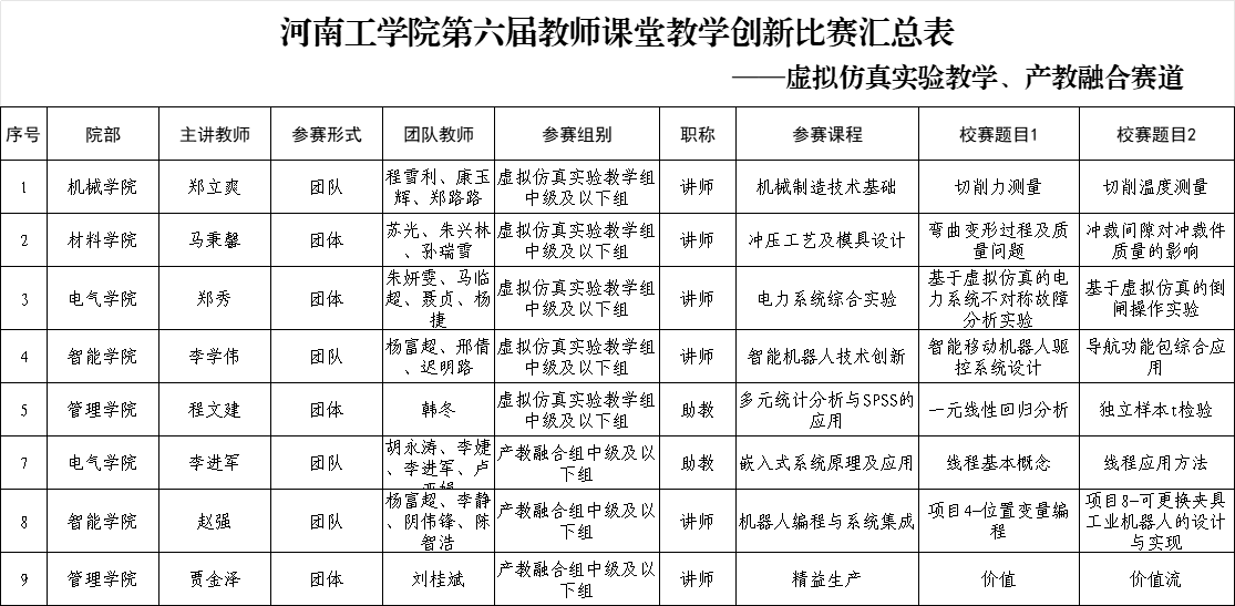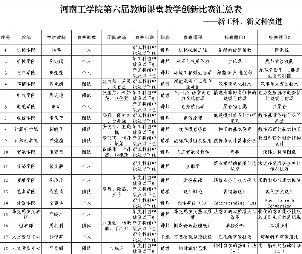 根据《关于举办河南工学院第届教师课堂教学创新比赛的通知》安排,现将决赛事宜通知如下:
