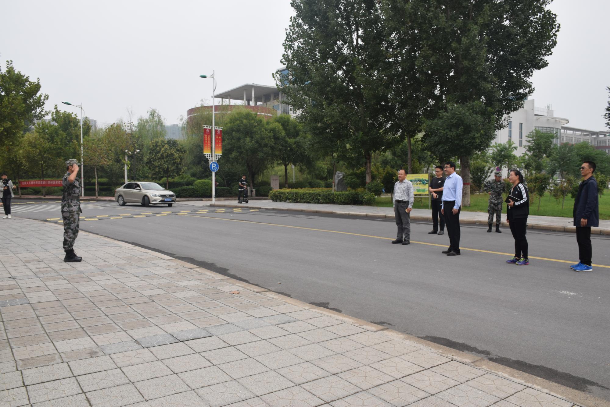 9月20日上午,院党委书记赵学通、副院长戚新波在学生处、武装部负责人朱松梅的陪同下来到军训现场,亲切看望辛苦训练的军训教官和2018级军训新生。