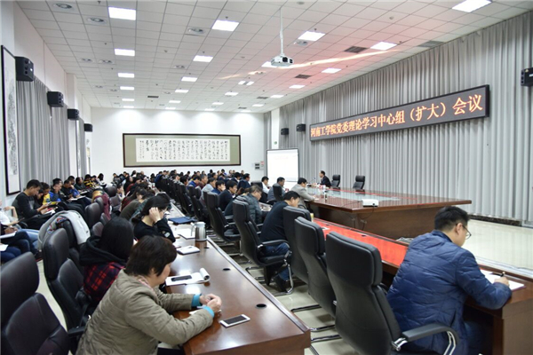 11月23日上午,校党委理论学习中心组扩大会在第五会议室召开,新乡市委常委、政法委书记郅晓峰应邀来校作题为《深入学习贯彻党的十九大精神,共建平安新乡、平安校园》的专题报告。校党委理论学习中心组成员、各党总支书记、学工部全体工作人员、全体辅导员和后勤服务党总支全体人员聆听了报告。校党委书记赵学通主持会议。
